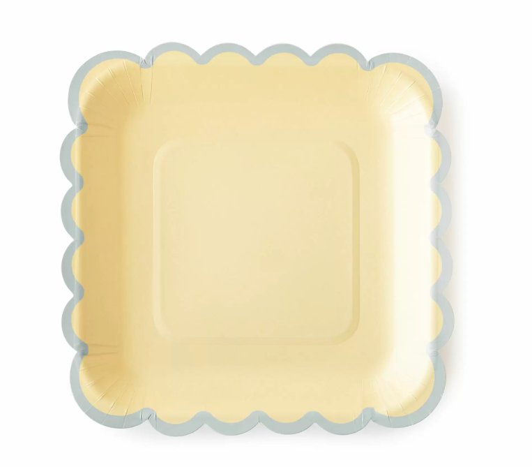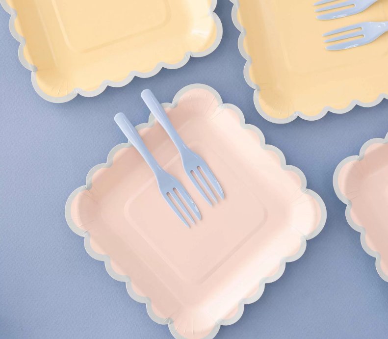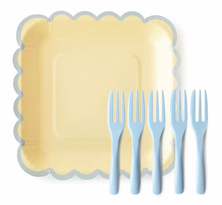奶油黃色紙盤+棉花糖藍叉子(一組各5入)