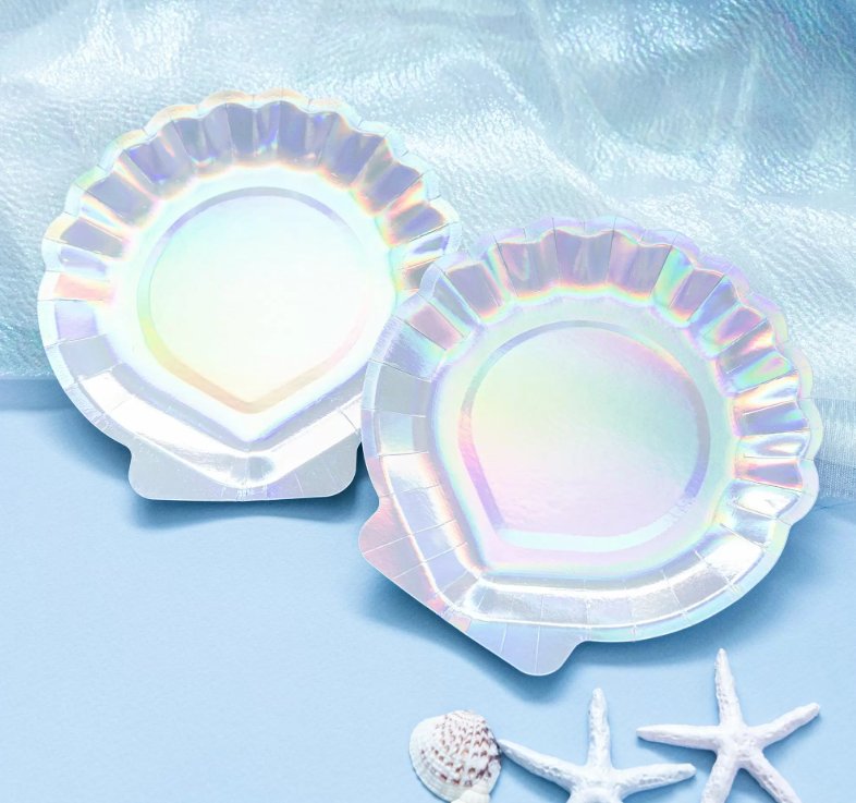 15公分閃亮亮貝殼盤叉組商品編號:TCU-105夢幻鐳光炫彩貝殼蛋糕盤+叉(5盤+5叉/包),100 包/箱