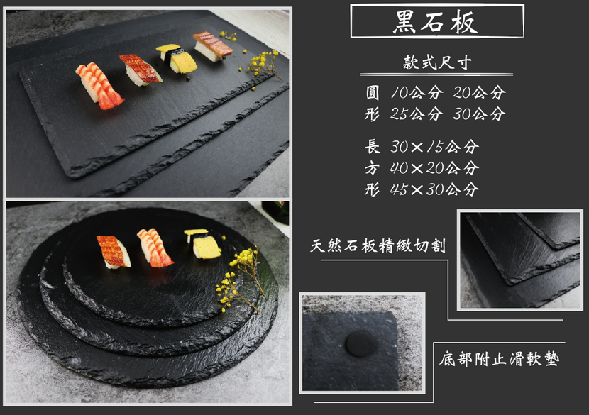 30cm黑石板-圓形30個一組-商品編號:AQ02-01-04黑石板-長方形(底加止滑墊)